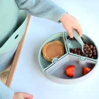 I bought a suction bowl. This is a solid, quality baby‘s tableware. I feed not only snacks or fruit in this bowl, but also soups, porridge ext. My baby can easily carry it. All in all, a really solid, good quality bowl. Love the color too.